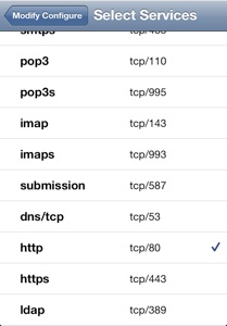 選択できるTCPのサービスを一覧表示します。