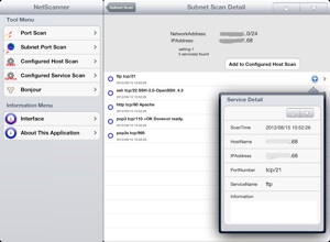 ネットワークアドレスを入力し、GoScanボタンをタップする事により指定されたネットワークのすべてのノードにPortScanを試みます