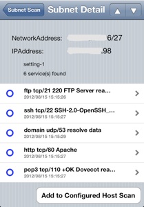 ・ネットワークアドレス、PortScanに利用した設定名、時刻、結果をテーブルに表示します