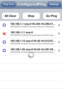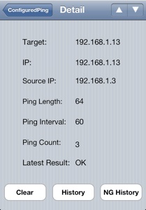 宛先が既に設定されている場合は、GoPingボタンをタップする事により事前に設定した宛先の全てのノードにpingを試みます