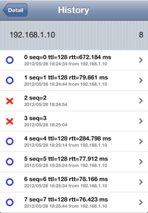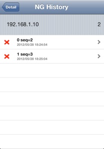 NG Historyをタップする事により応答が無かった結果だけを表示します (3-4)